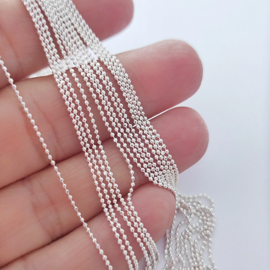 Cadena de plata 925 con eslabón de bolitas facetadas que le dan un brillo extra.