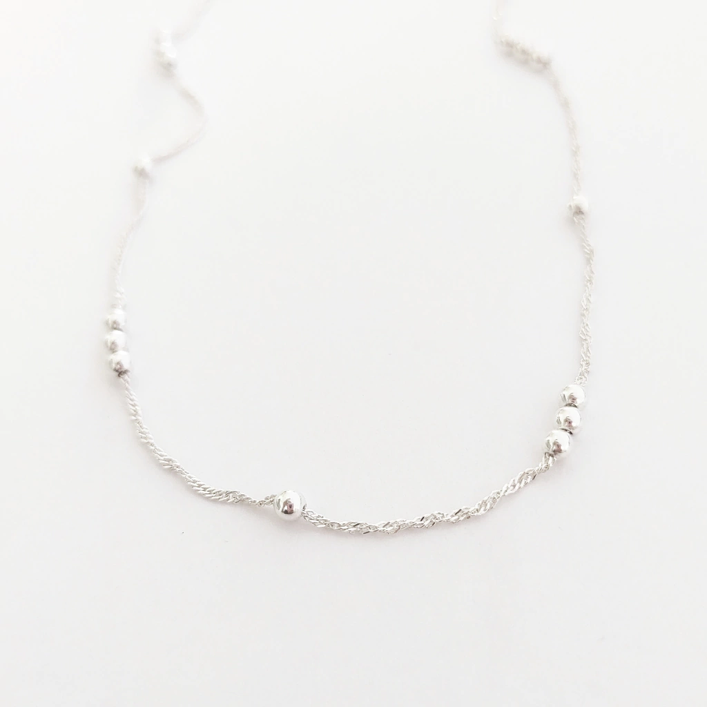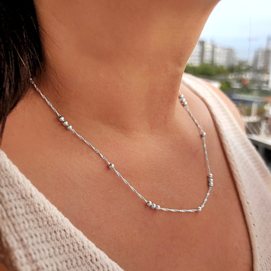 Collar de plata 925 con bolitas y cadena modelo Singapour. Viene en 2 largos: 40 y 45 cm.