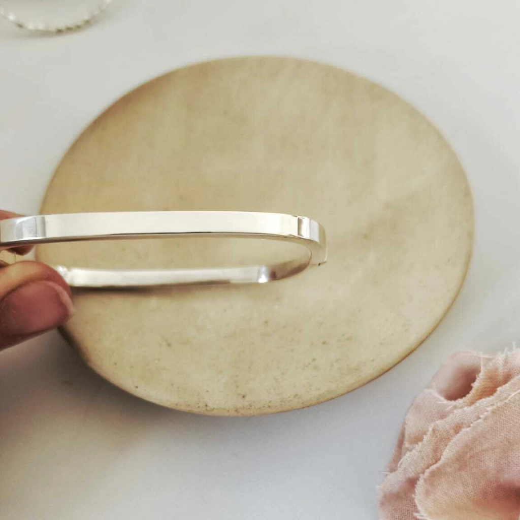 Pulsera Aryna, tipo esclava cuadrada redondeada con cierre en plata 925.