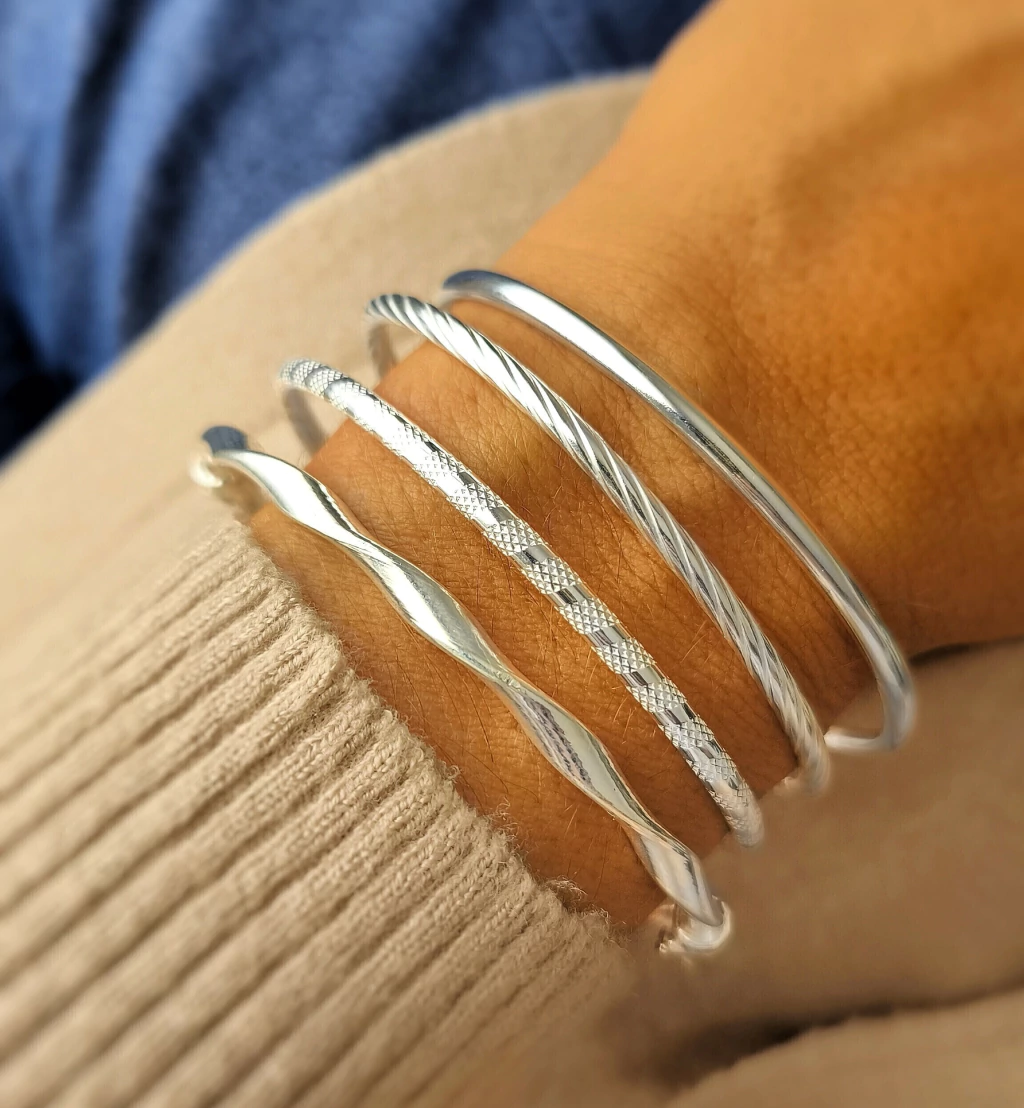Pulsera Gia, tipo esclava con cierre en plata 925 ovalada para que se acomode mejor en la muñeca.