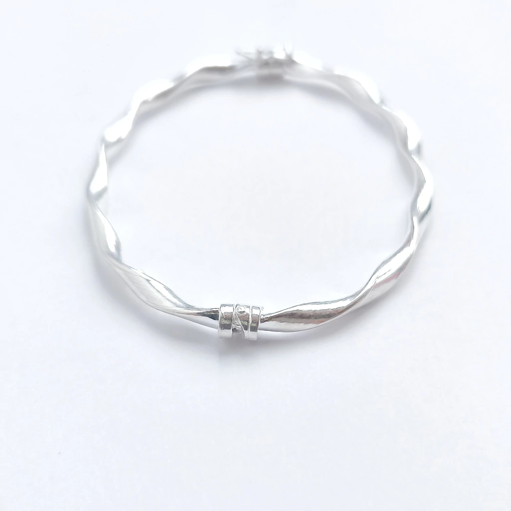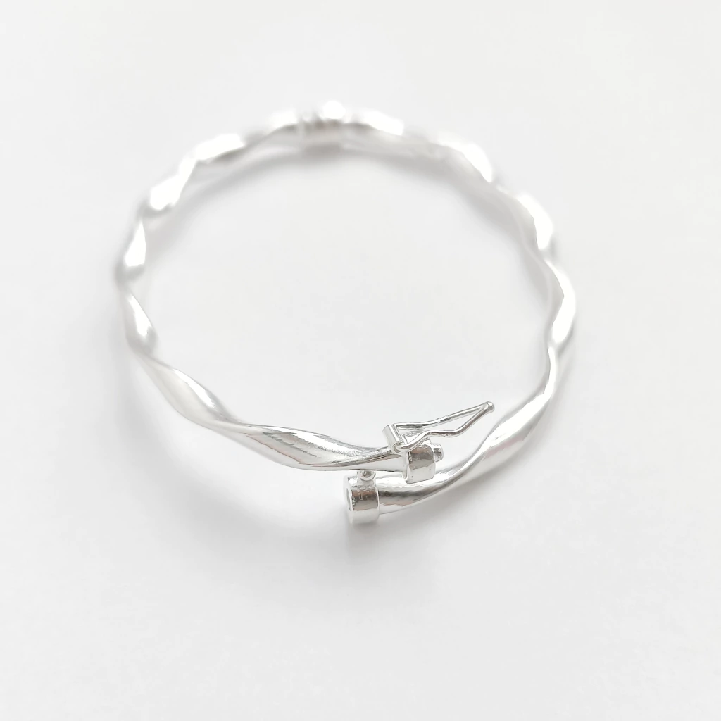 Pulsera Nikita, tipo esclava con cierre en plata 925 ovalada para que se acomode mejor en la muñeca. Sus medidas son de 6 cm x 5 cm y son equivalentes para un contorno de muñeca S y M ver medida de muñecas