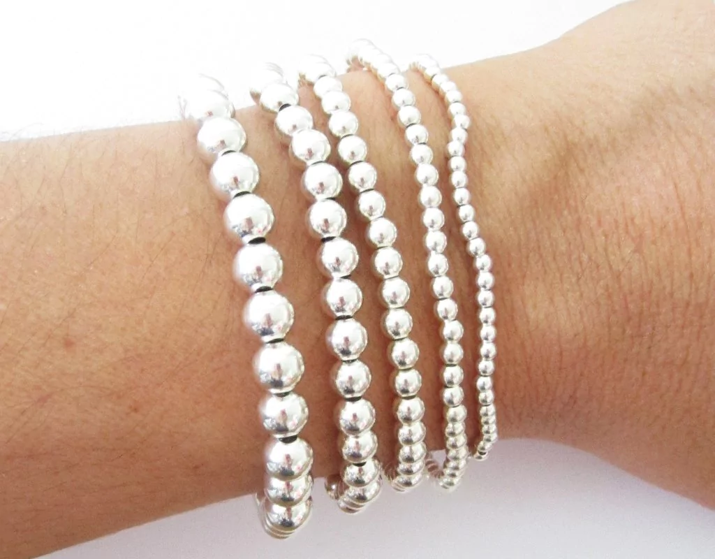Estas pulseras con bolitas de plata llevan por dentro una tanza elastizada de muy buena resistencia. Las bolitas vienen en diferentes diámetros: de 2, 3, 4 o 5 mm. Y quedan muuuy buenas usándolas de a varias juntas.