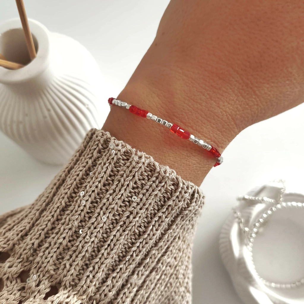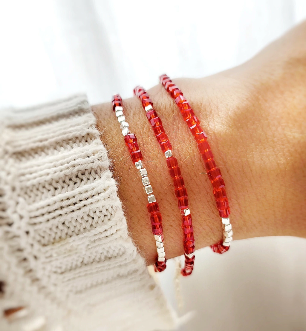 Pulsera Delfina con cubos de plata 925 y piedritas en color rojo. Si te gusta el rojo y tenes muchos modelos para elegir!!!