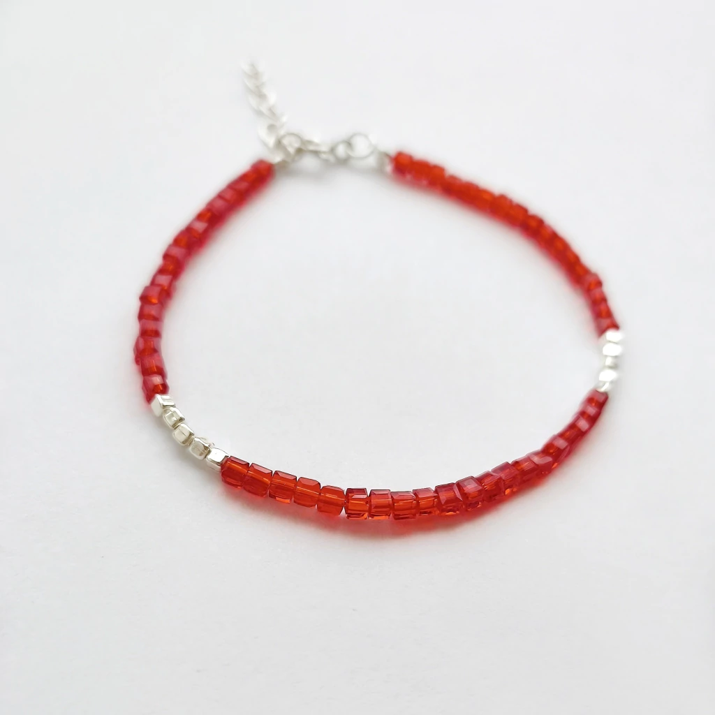 Pulsera Helga con cubos de plata 925 y piedritas en color rojo. Si te gusta el rojo y tenes muchos modelos para elegir!!!