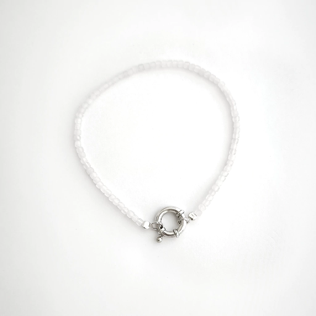 Pulseras Kenia con cierre marinero. En cada color la tonalidad varia entre las piedras haciendo de este diseño un modelo particular y único, hay todas de piedras y otras combinadas con cubos de plata.