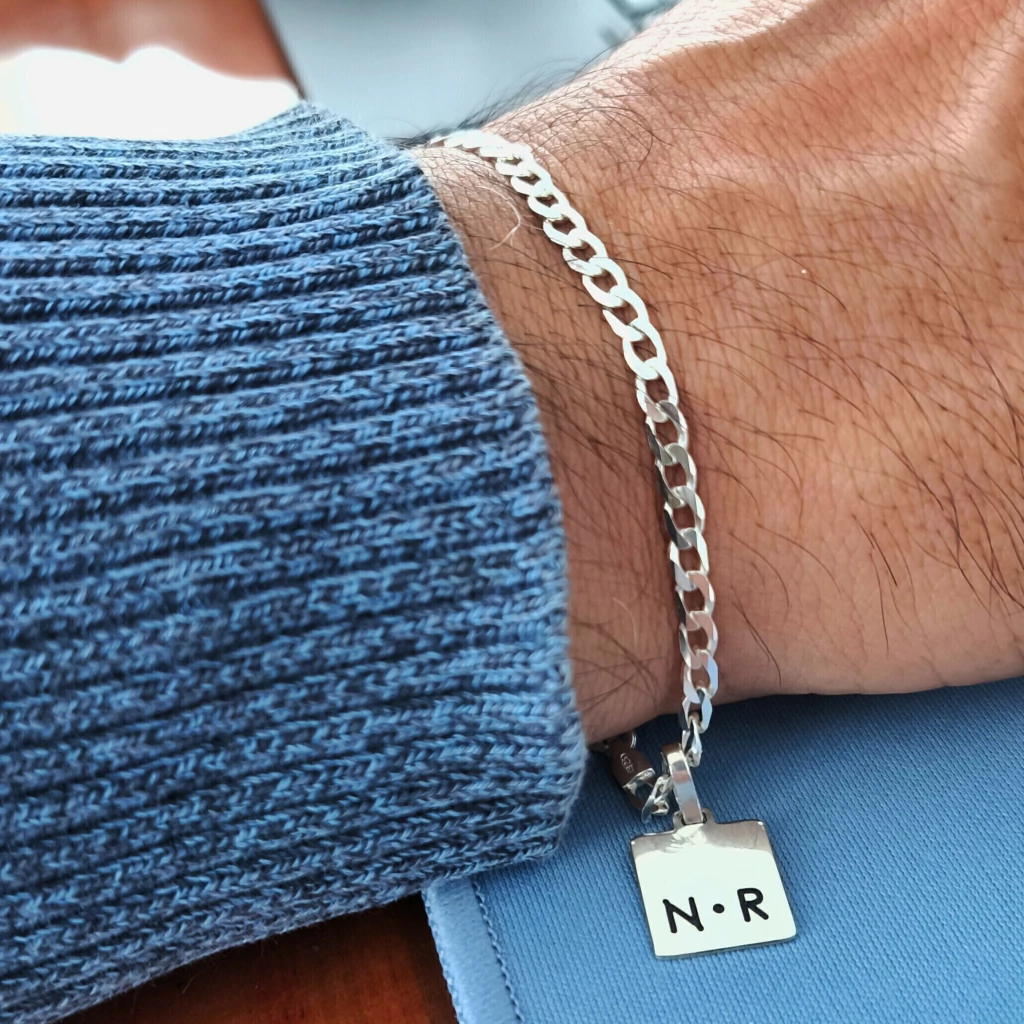 conjunto de pulsera modelo Grumét gruesa y medalla Emiliano para personalizar.