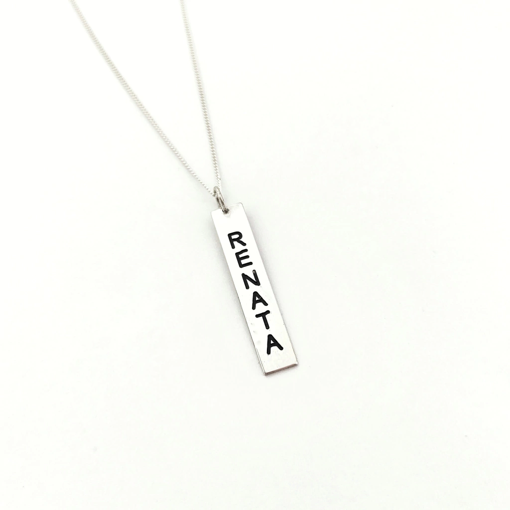 El Tag (o tablita, tirita, chapita, rectángulo, cintita, etc 🤪) Lo fabricamos en tres largos: 25, 33 y 40 mm. La elección del largo puede depender de la extensión del nombre que quieras grabarle y/o de tu gusto en cuanto al largo de la medalla.